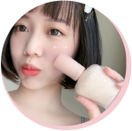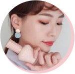將粉撲沿著餅邊緣,以畫圓方式,沾取適量粉底均勻塗抹於臉部